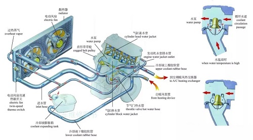 Otomobil soğutma sistemi su pompası, su borusu, radyatör, sıcaklık kontrol borusu ve diğer bileşenlerden oluşur. Sıvı soğutmalı ve hava soğutmalı olmak üzere iki tipi vardır.